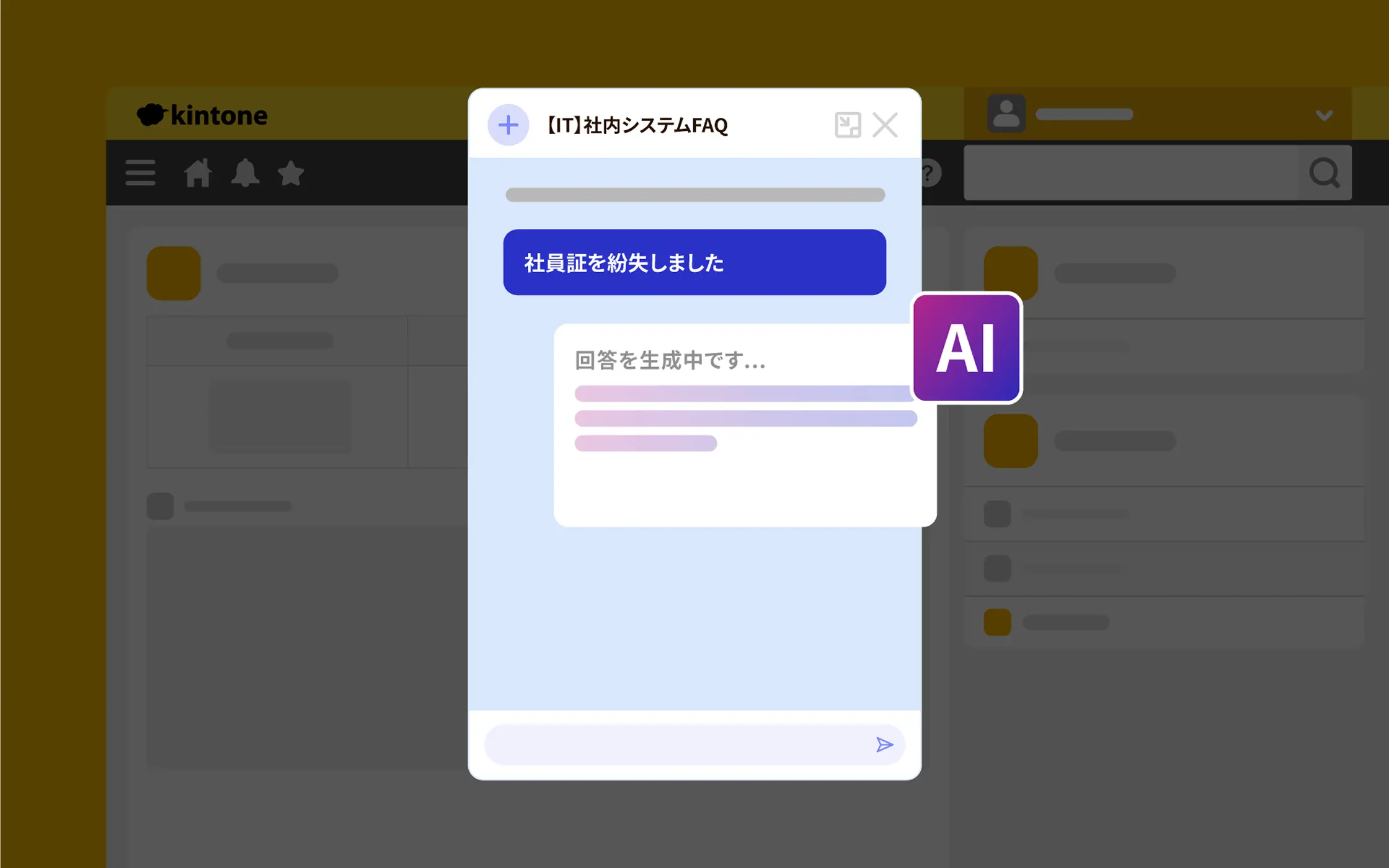 AIがキントーンに蓄積されているデータを効率的に検索します。業務に必要な情報をすばやく見つけることができるから、業務のスピードが向上し、キントーンのデータをチーム全体でより効果的に活用できます。
