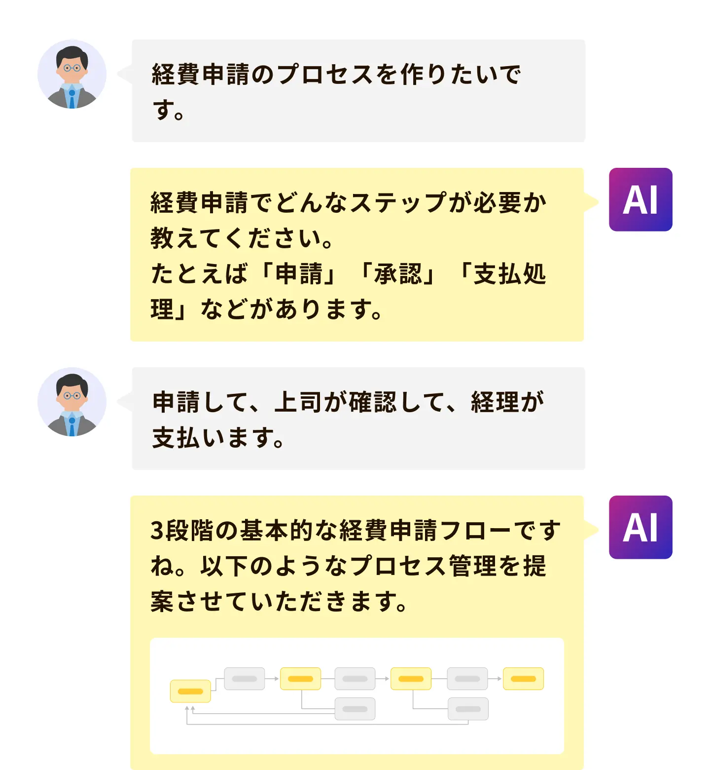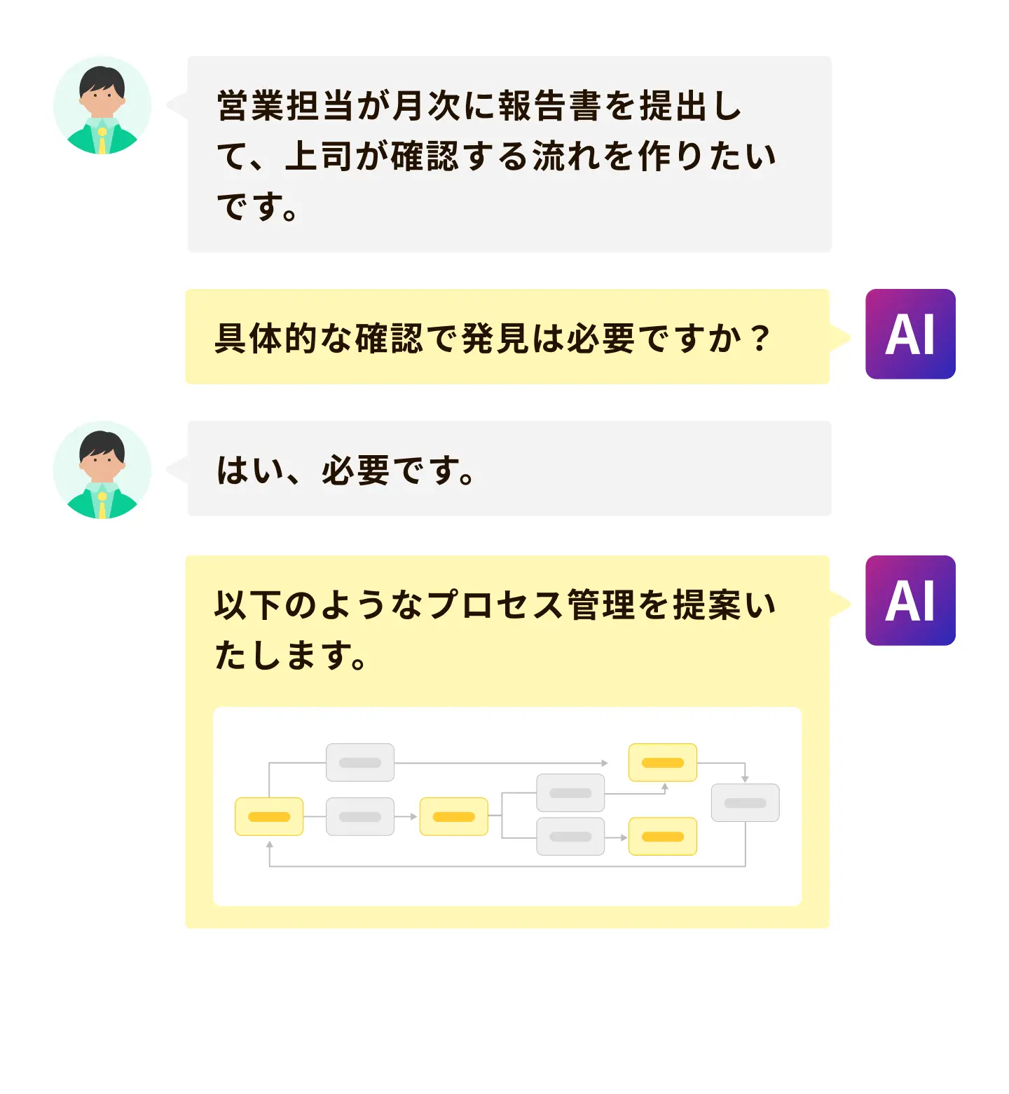 プロセス管理の設定が不慣れでも、専門用語がわからなくても、AIと対話しながらかんたんに設定できます。
