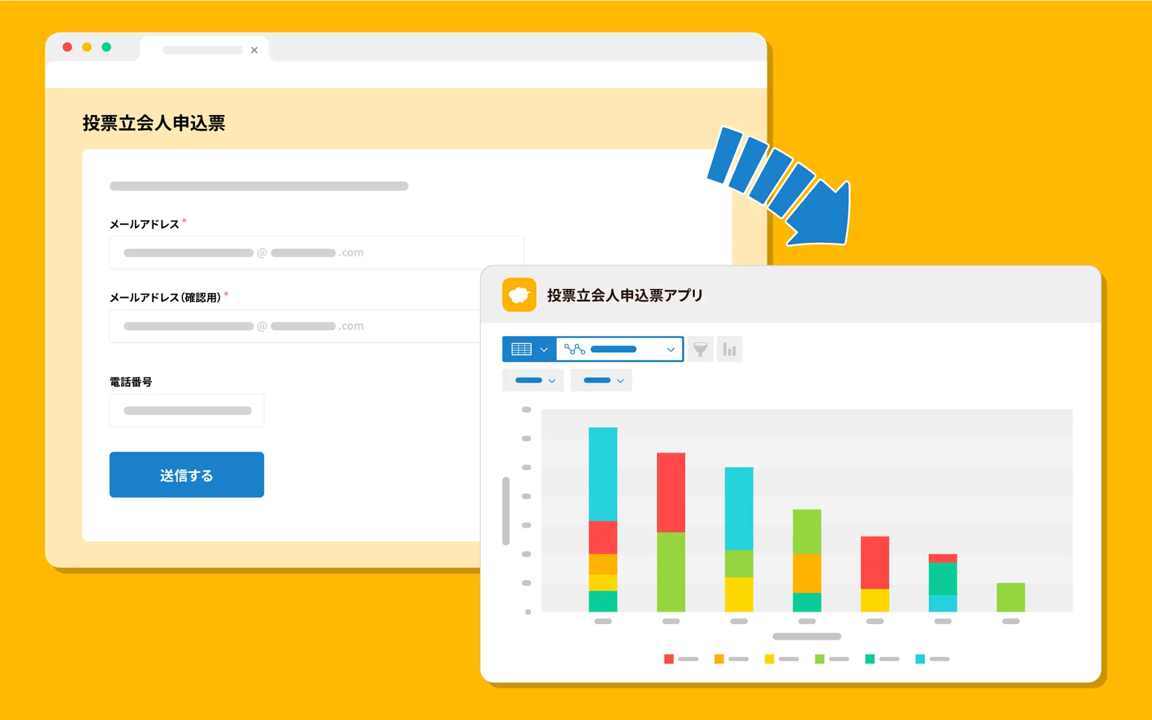 - WebフォームやLINEなどのSNSと連携して、住民からの申請やアンケートをオンライン化します。