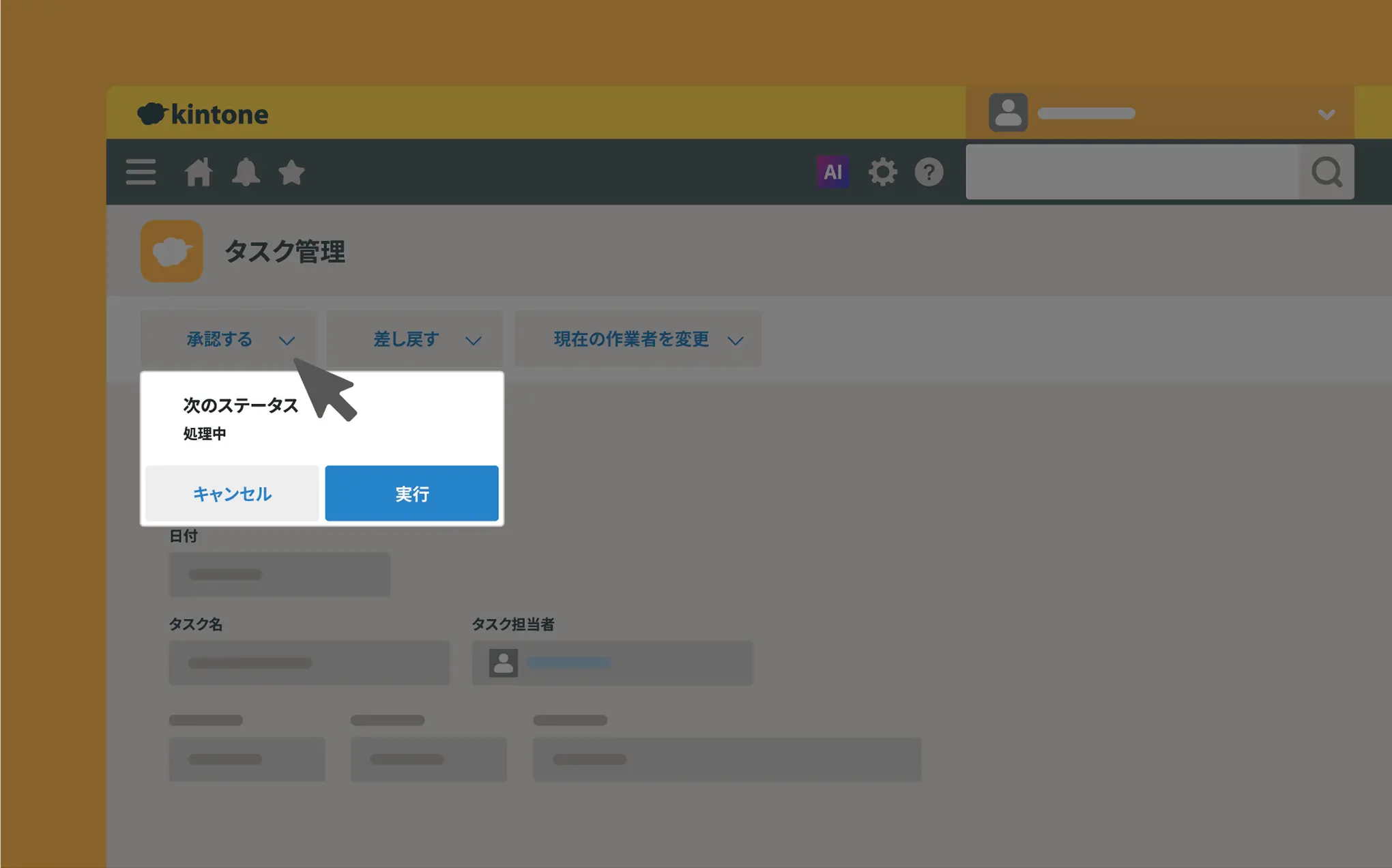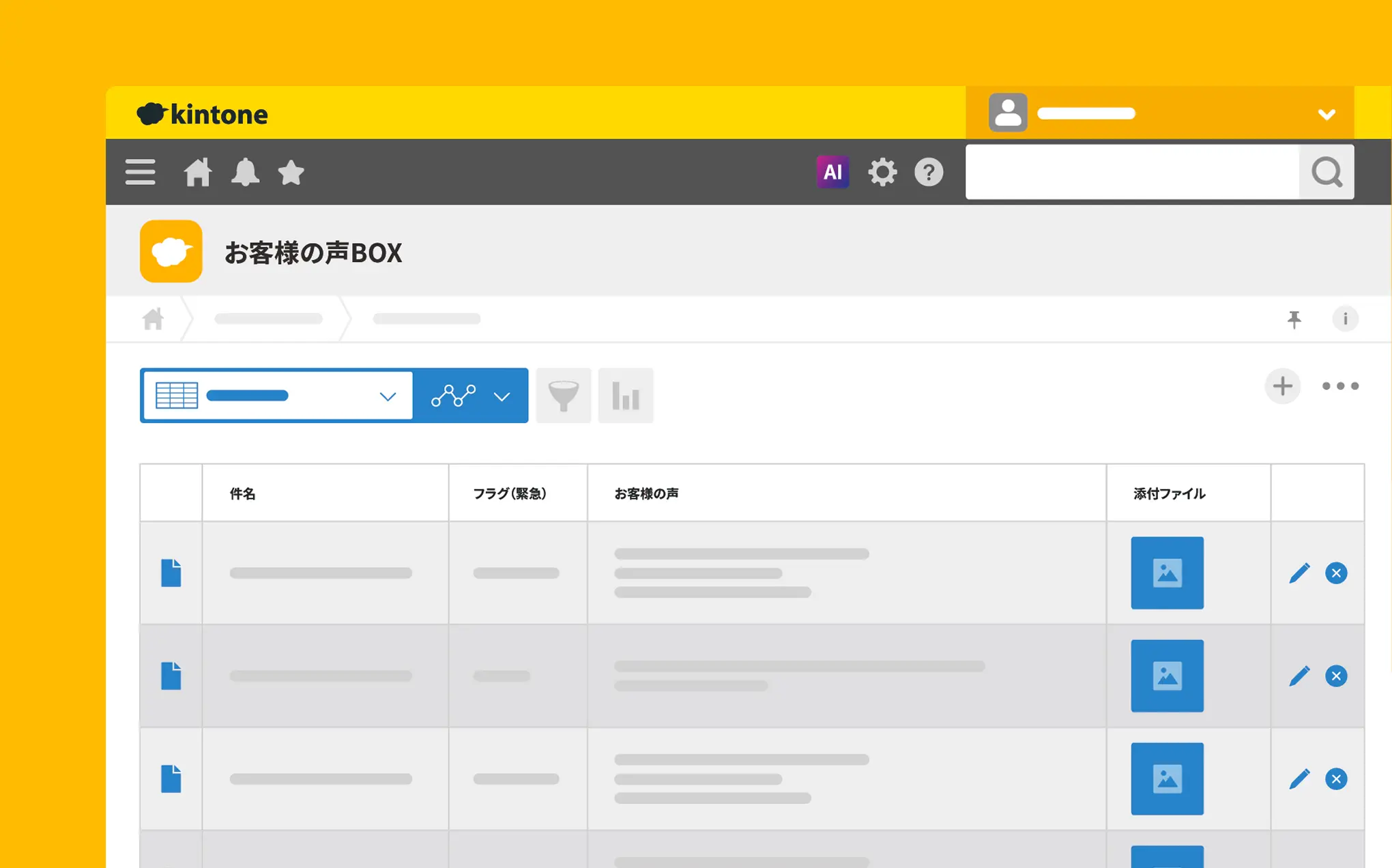 - キントーン上で、対応状況や担当者を設定し、全体管理を見える化できます。
