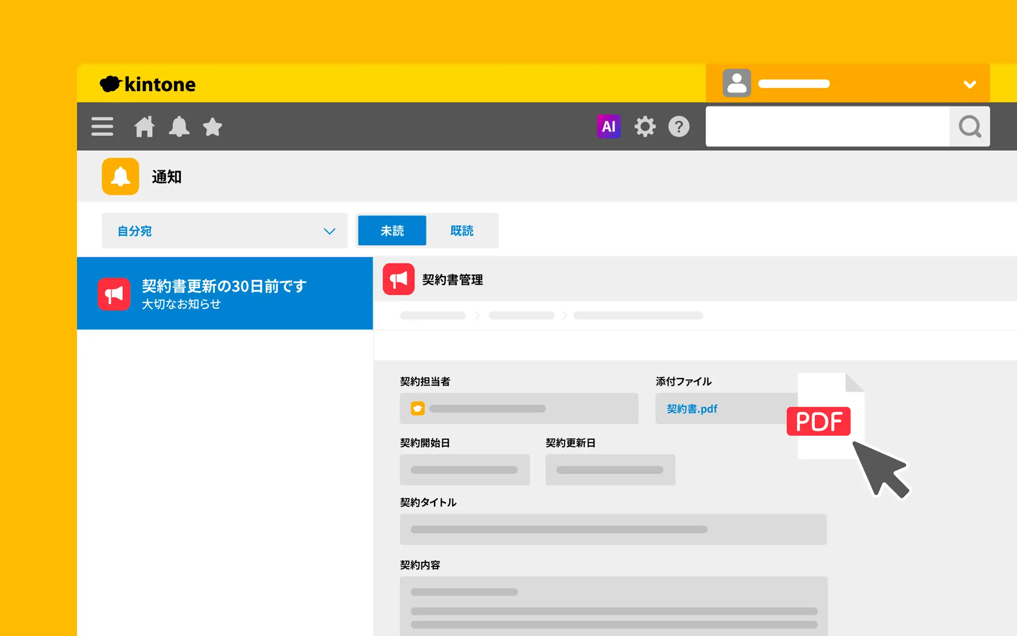顧客ごとの契約情報を管理し、サポート活動に役立てられます。 契約更新のタイミングに自動通知も可能です。