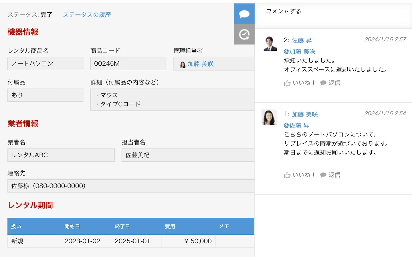 - 利用者やベンダー、作業手順書など複数の台帳も紐づけて管理可能です。