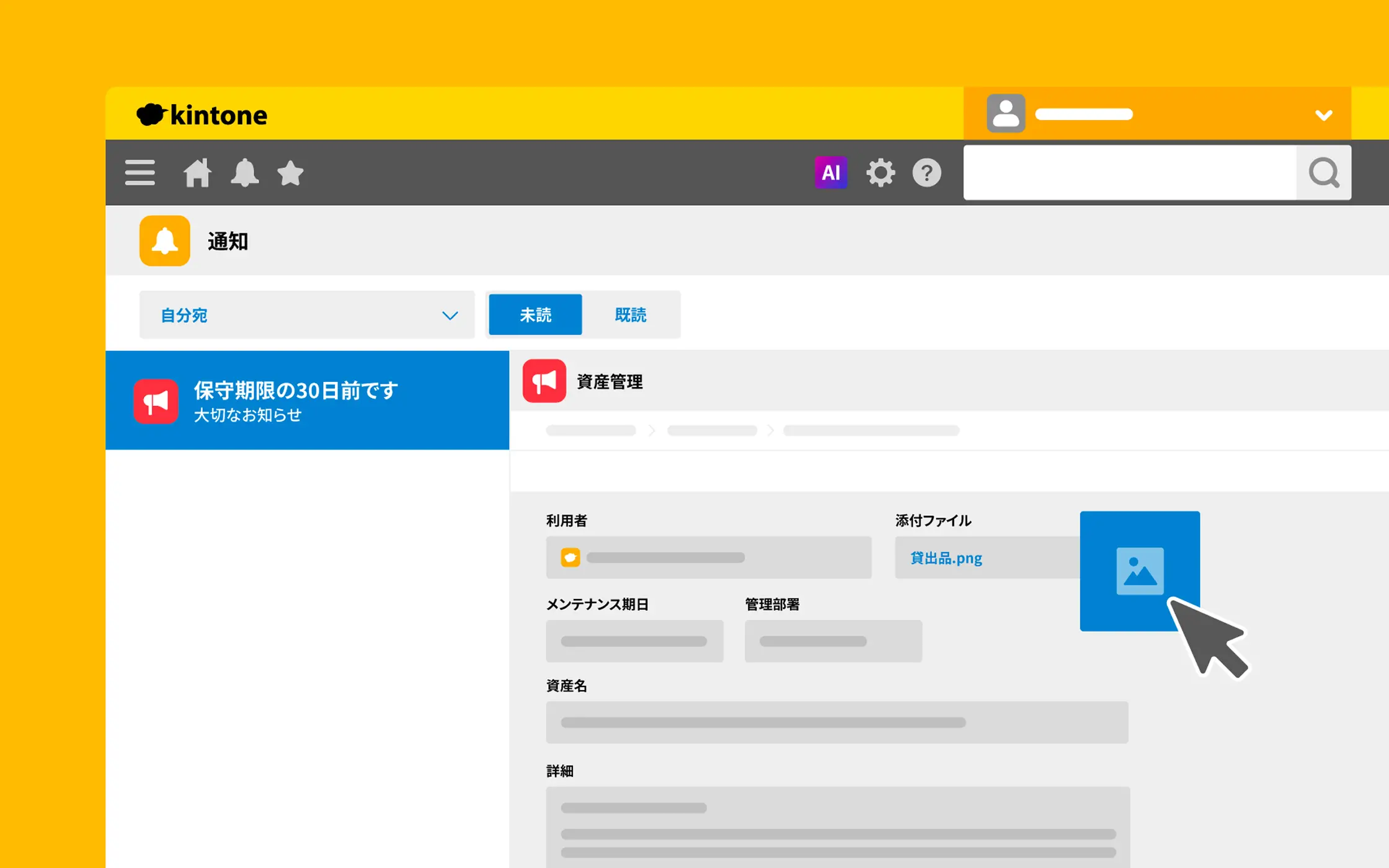 - 資産の状態や保守期限をリマインド通知で把握できます。