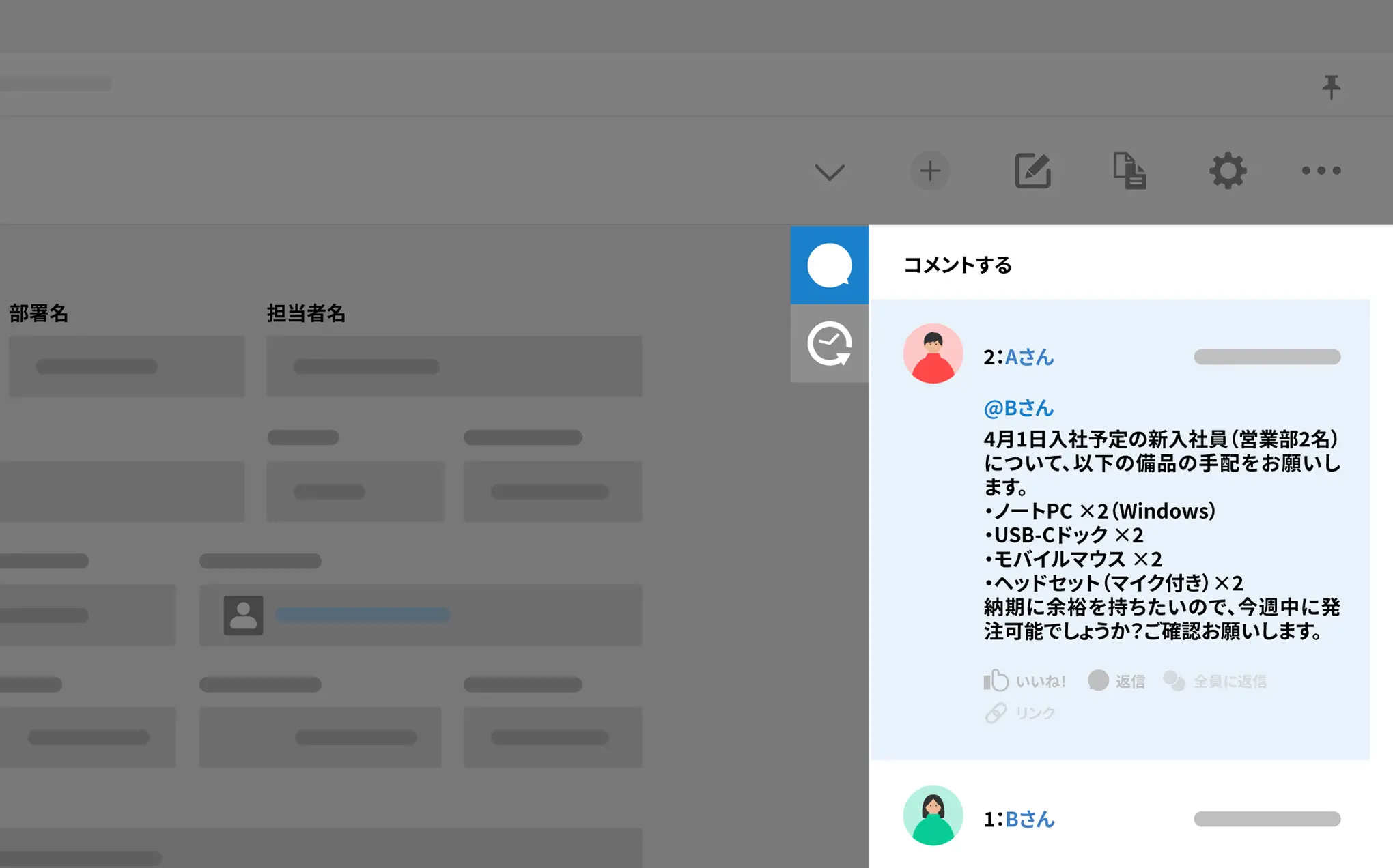 一つひとつのデータに対して、コメントを書き込めます。過去の指示やアドバイスも一箇所にまとまるので、引き継ぎもスムーズに行えます。