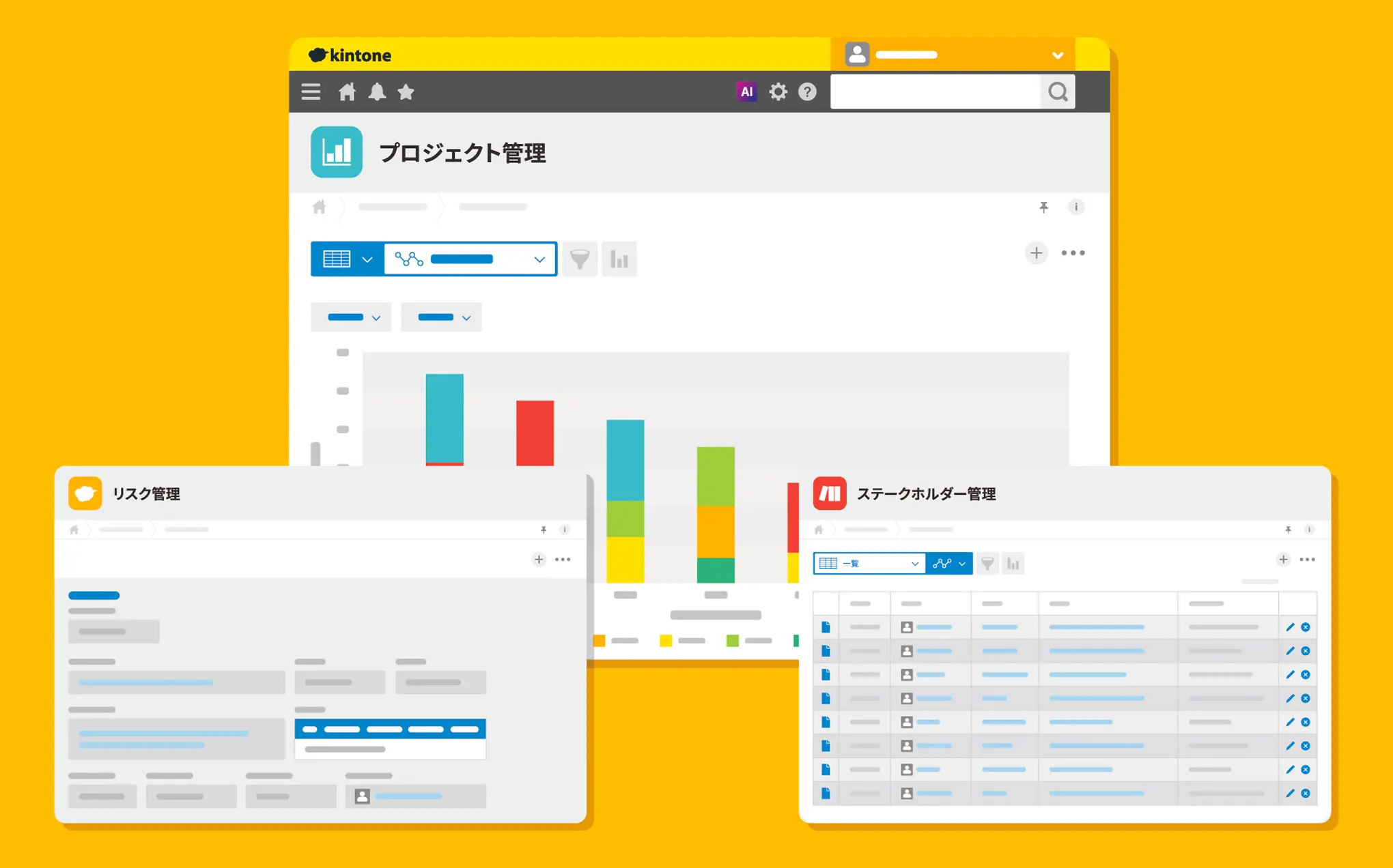プロジェクト遂行に必要な「リスク管理」「課題管理」「ステークホルダー管理」など一連業務をまとめて管理できます。