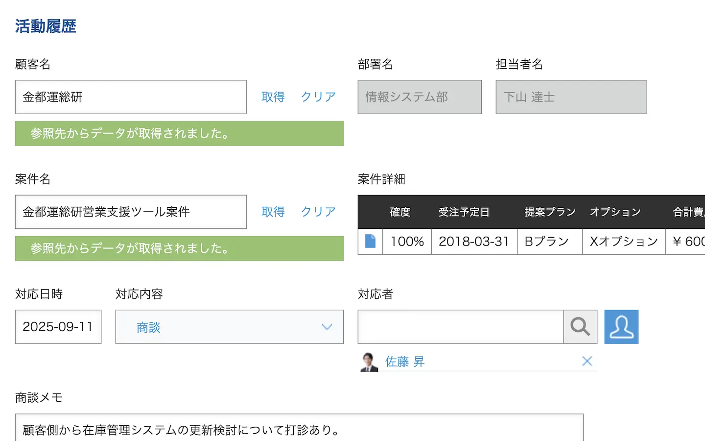 - 「問い合わせ日時」「担当者」「対応ステータス」など自社の業務に合わせて必要な項目を自由に設定できます。