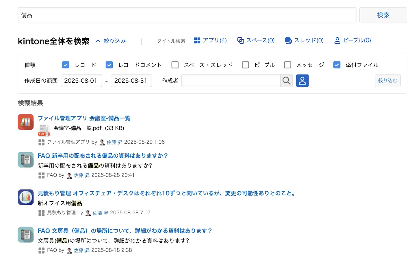 - 対応履歴や添付ファイルもキーワード検索可能です。