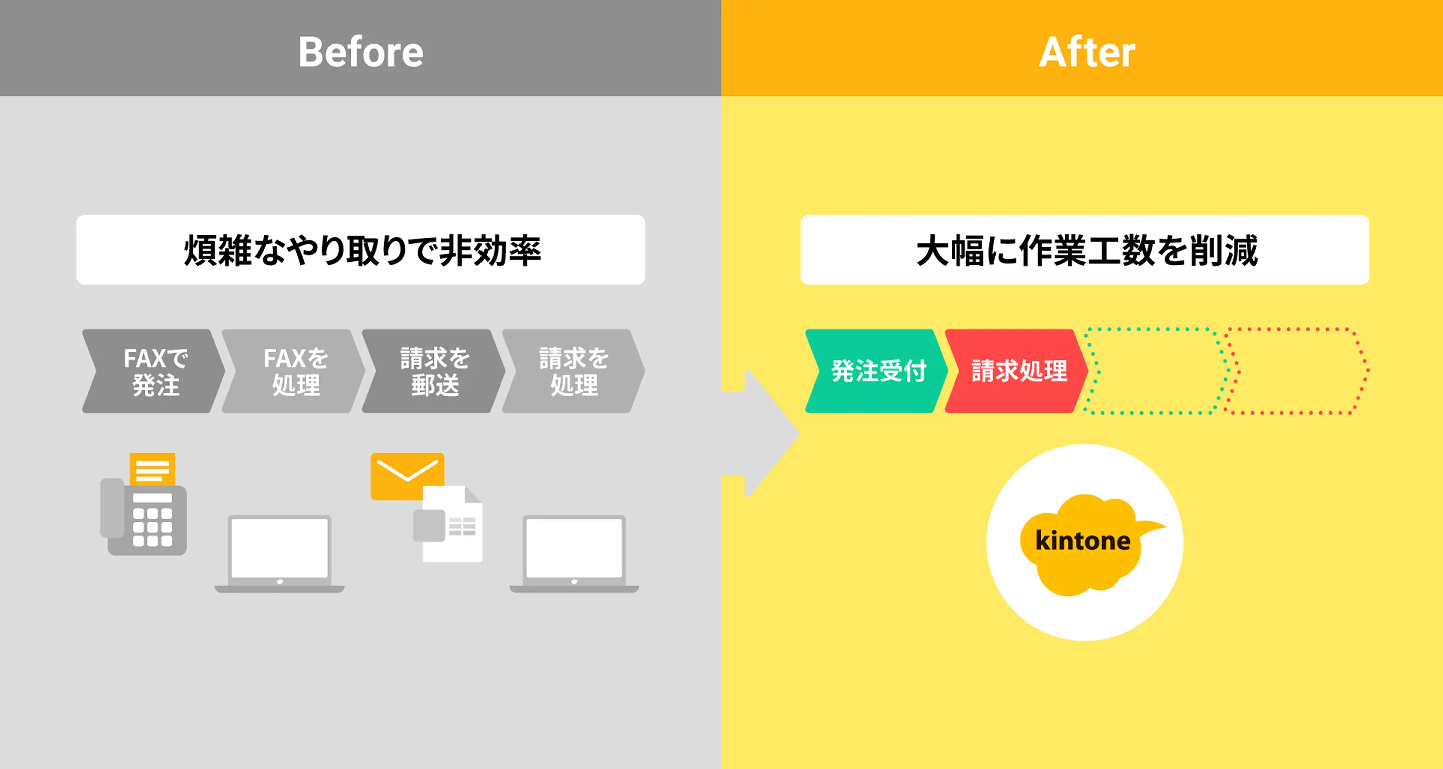 キントーンで自動化することで大幅に作業工数を削減できます。