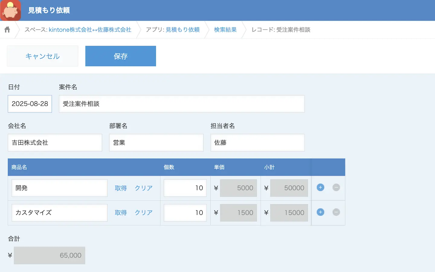 - 「案件名」「担当者」「対応ステータス」など自社の業務に合わせて必要な項目を自由に設定できます。