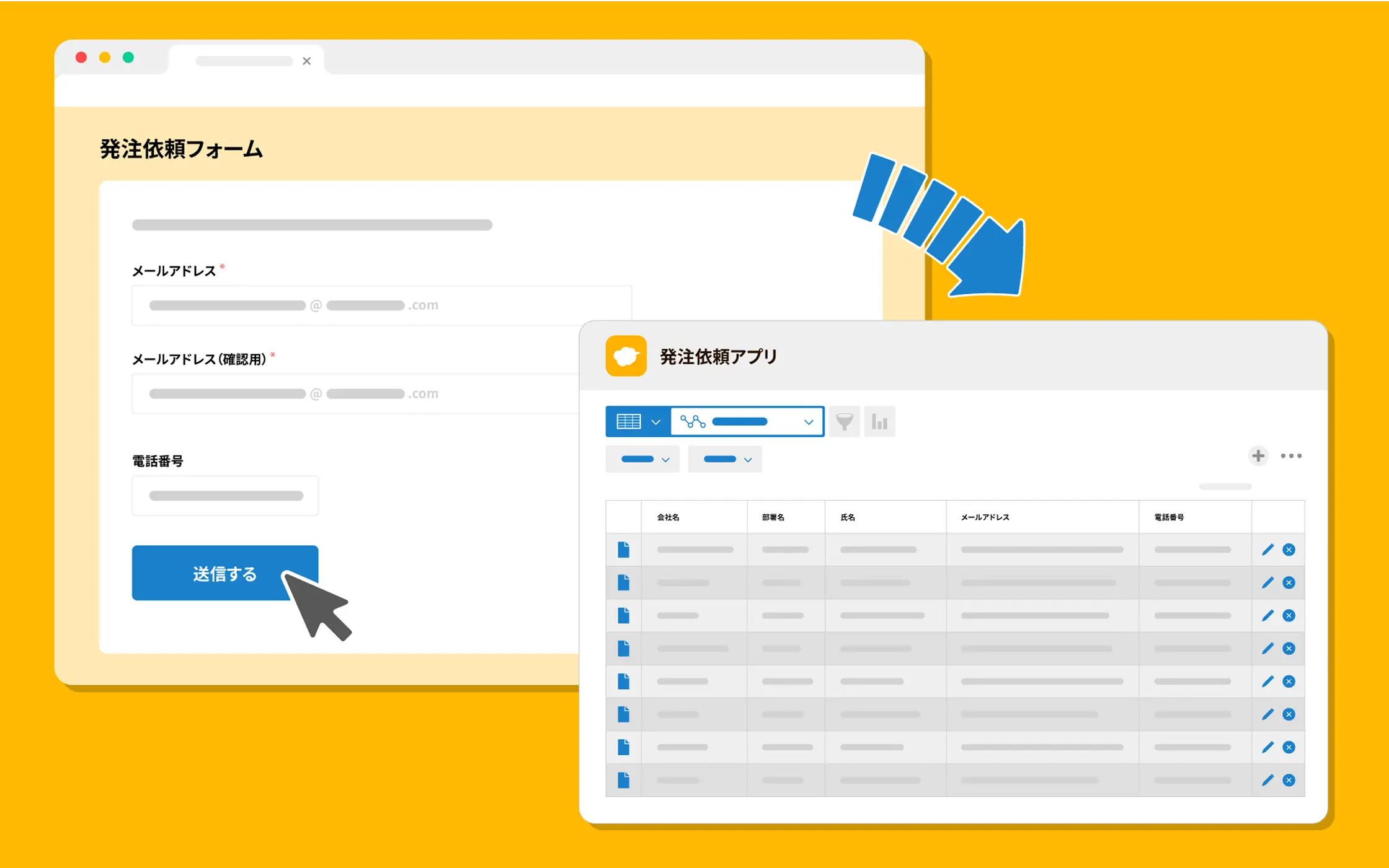 - Webフォームと連携することで、Webから手間なく発注依頼ができます。