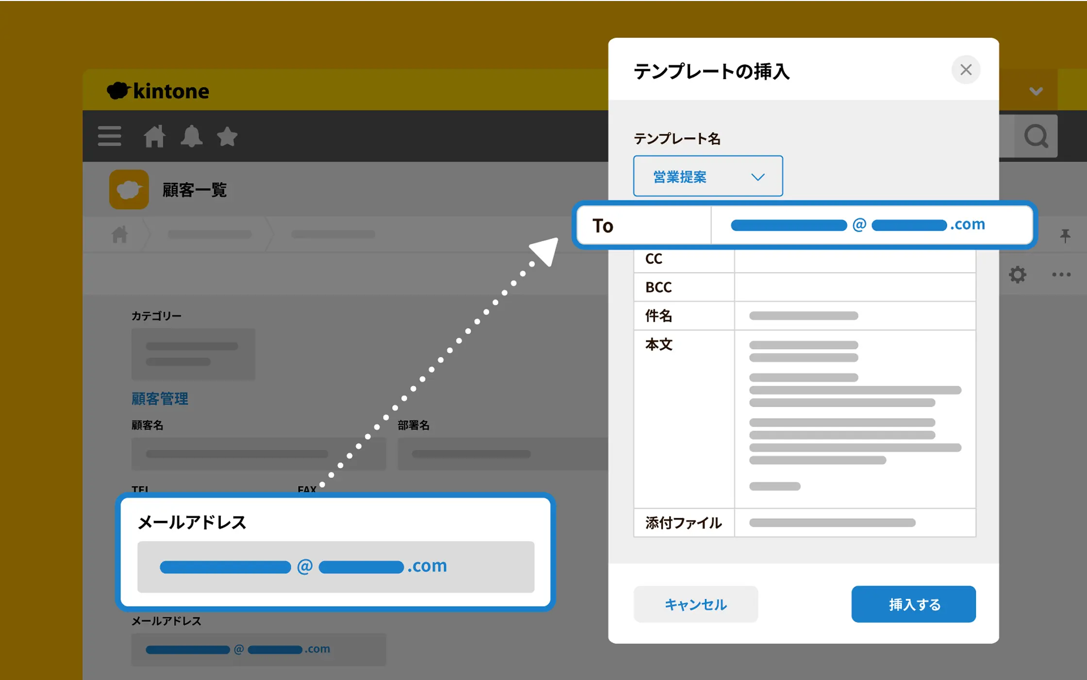 - メールの送受信履歴とメールアドレスを紐づけてキントーンで管理できます。