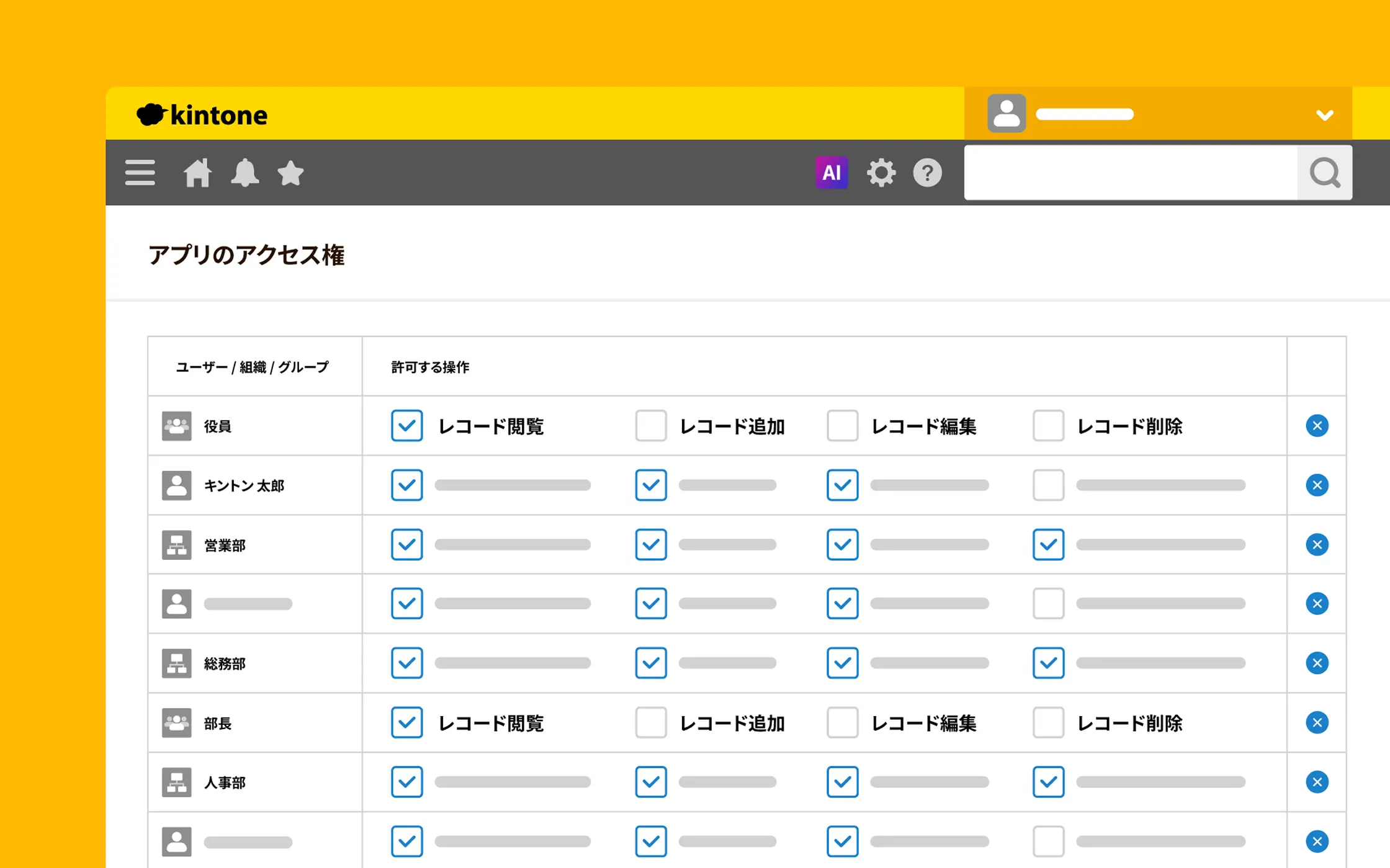 - 個人情報を扱うフィールドは非表示にするなど、情報に応じたアクセス制御ができます。