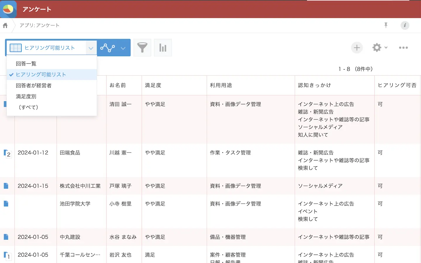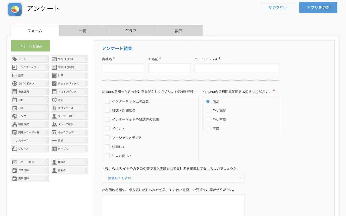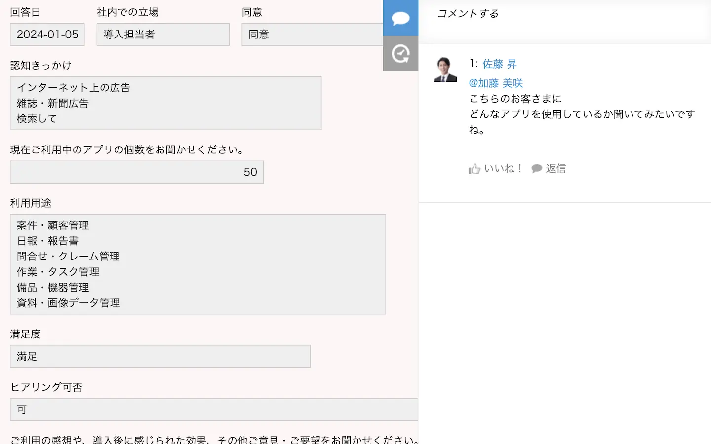 社内向け・社外向けを問わず、さまざまなアンケートや調査をキントーンで行えます。