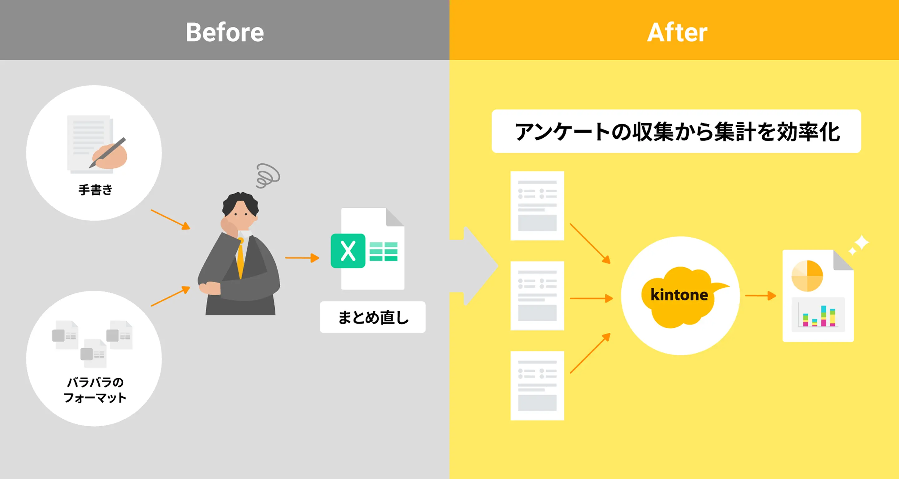 - 統一したフォーマットでデータが集まるので集計の手間いらず。