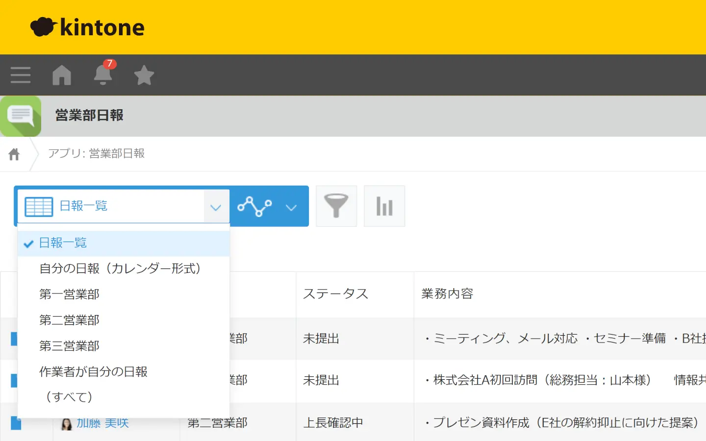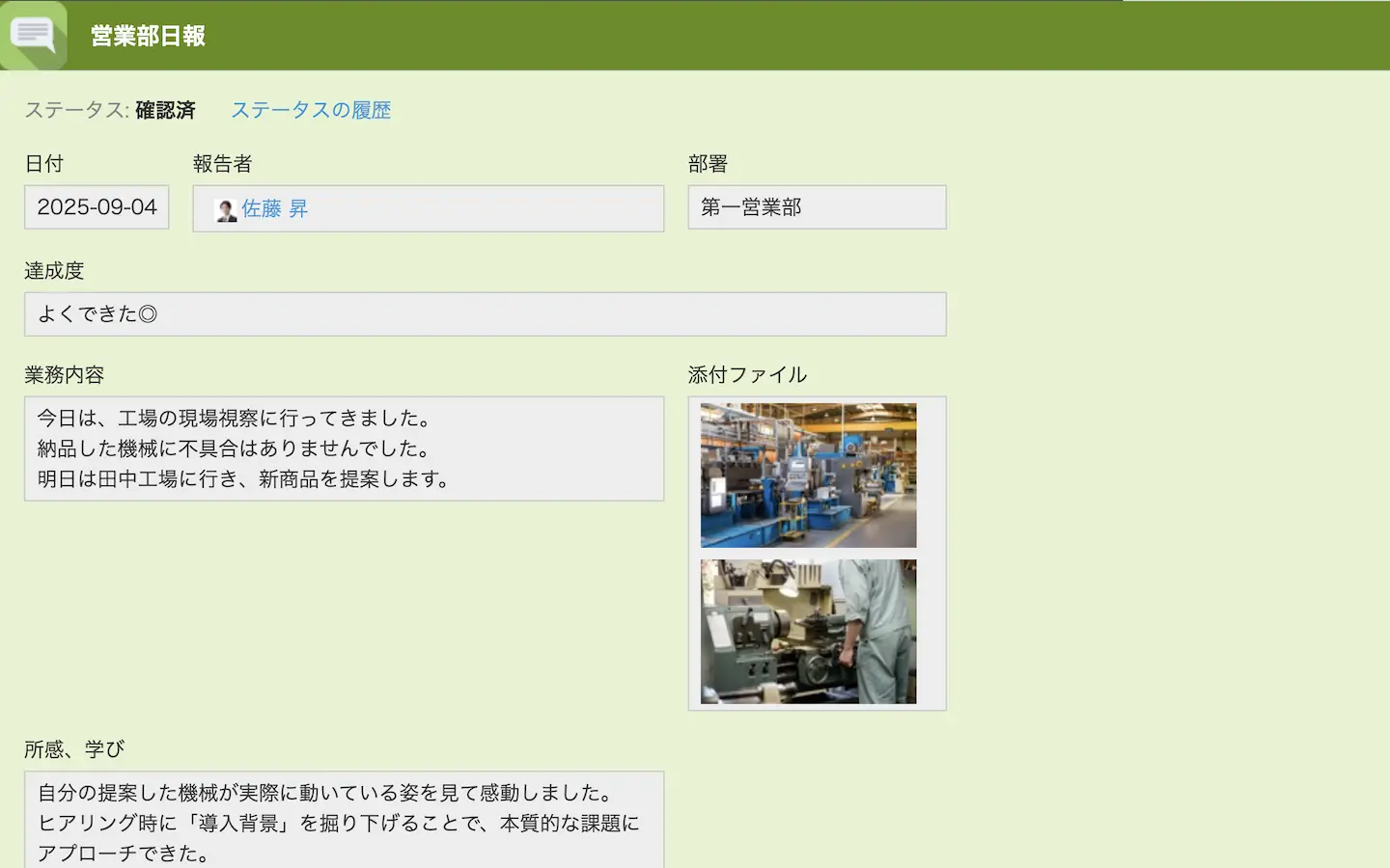 - 日報や報告書の提出状況を一覧で確認でき、未提出者をすぐに把握可能です。