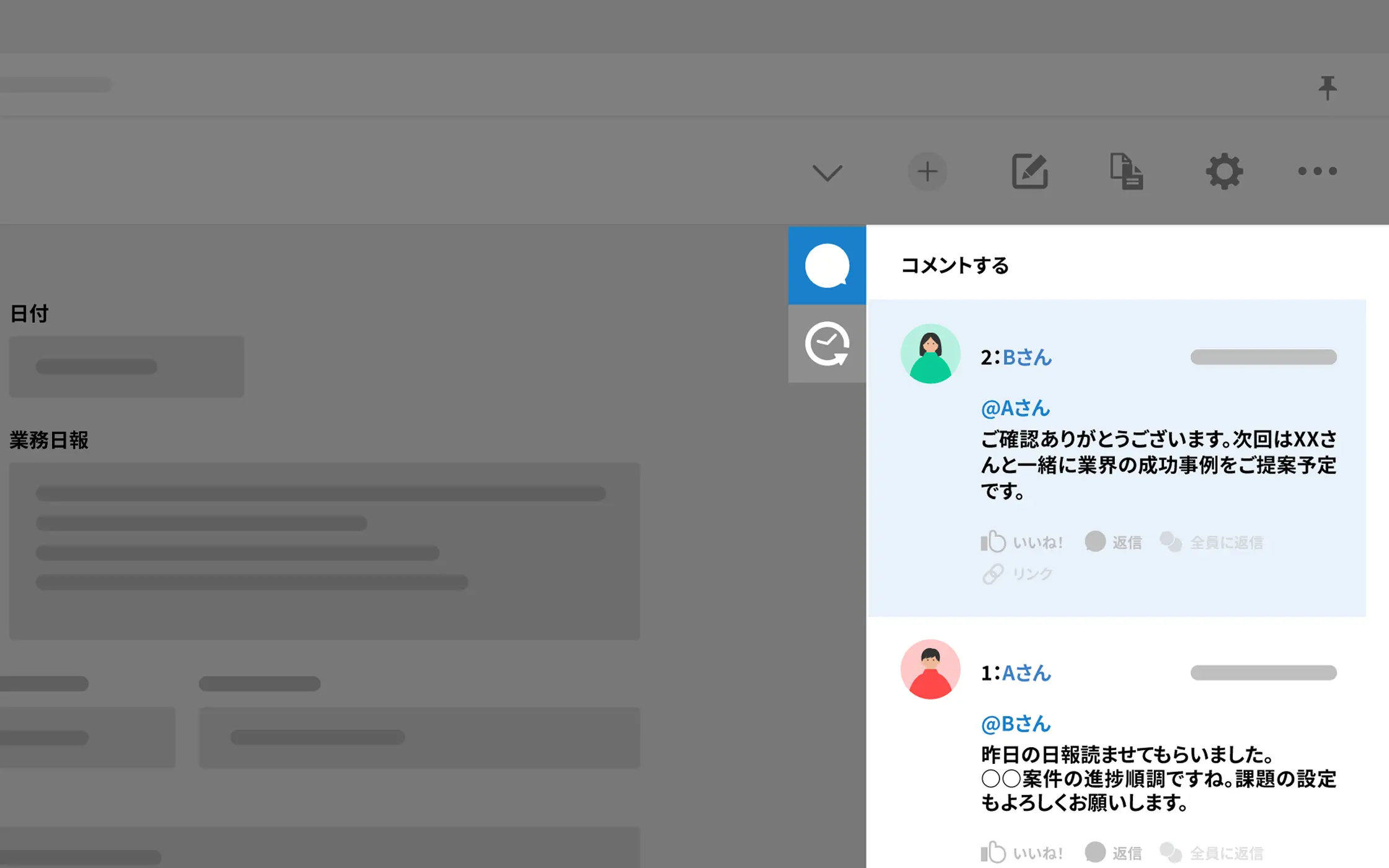 - 報告書に直接コメントでき、指示やアドバイスを瞬時に伝えられます。