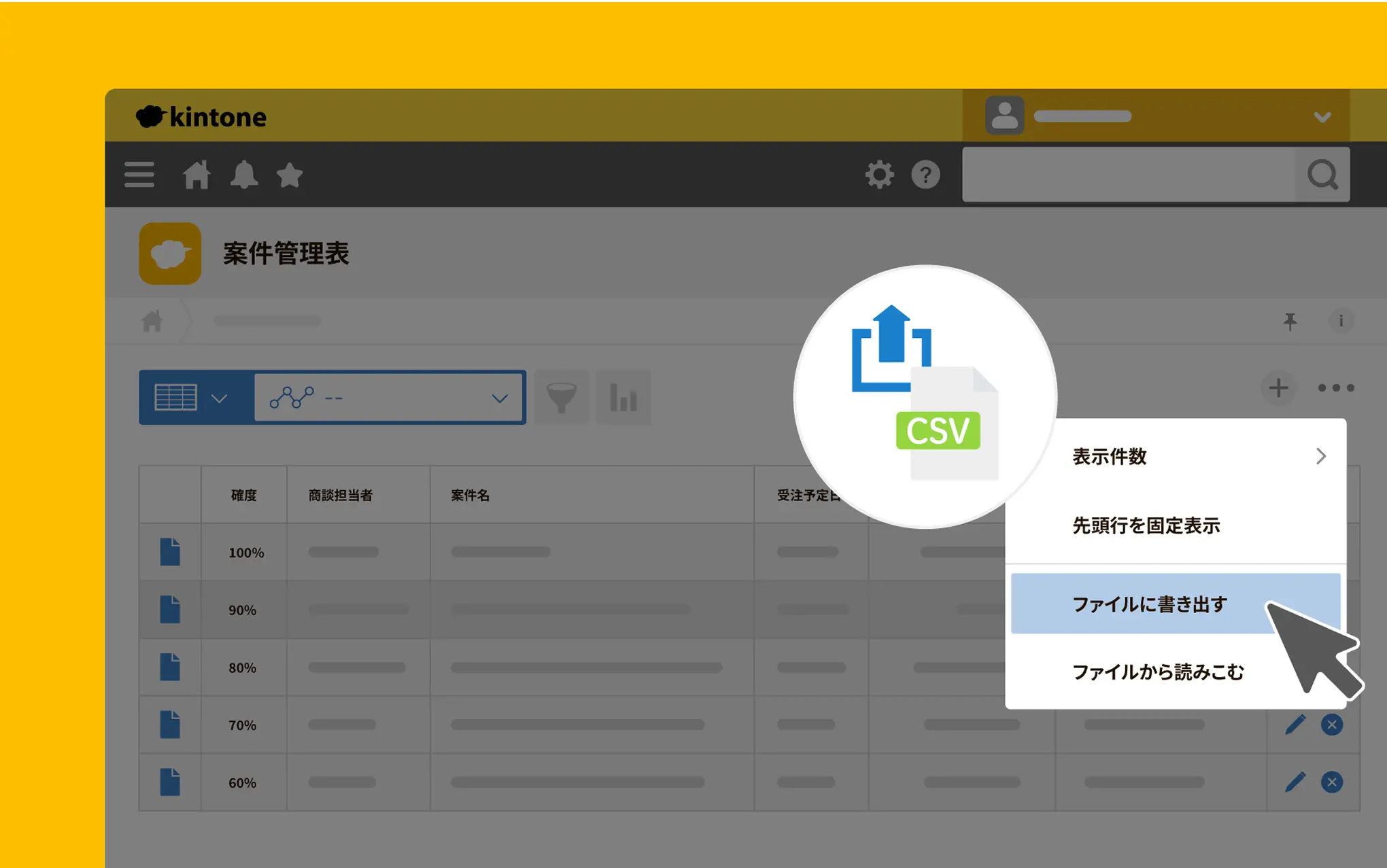 ご利用中のデータをキントーンアプリに移行したり、他システムにデータを読み込ませたりできます。
