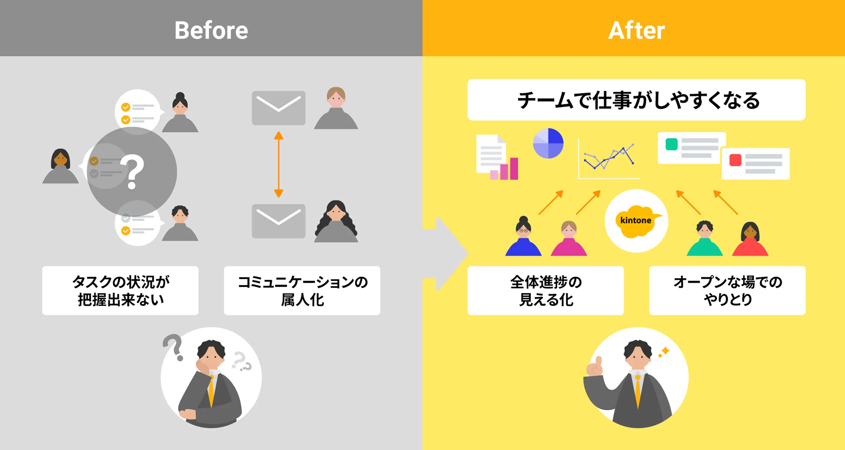 メールや紙、Excelで管理して属人化している情報をキントーンで管理することで