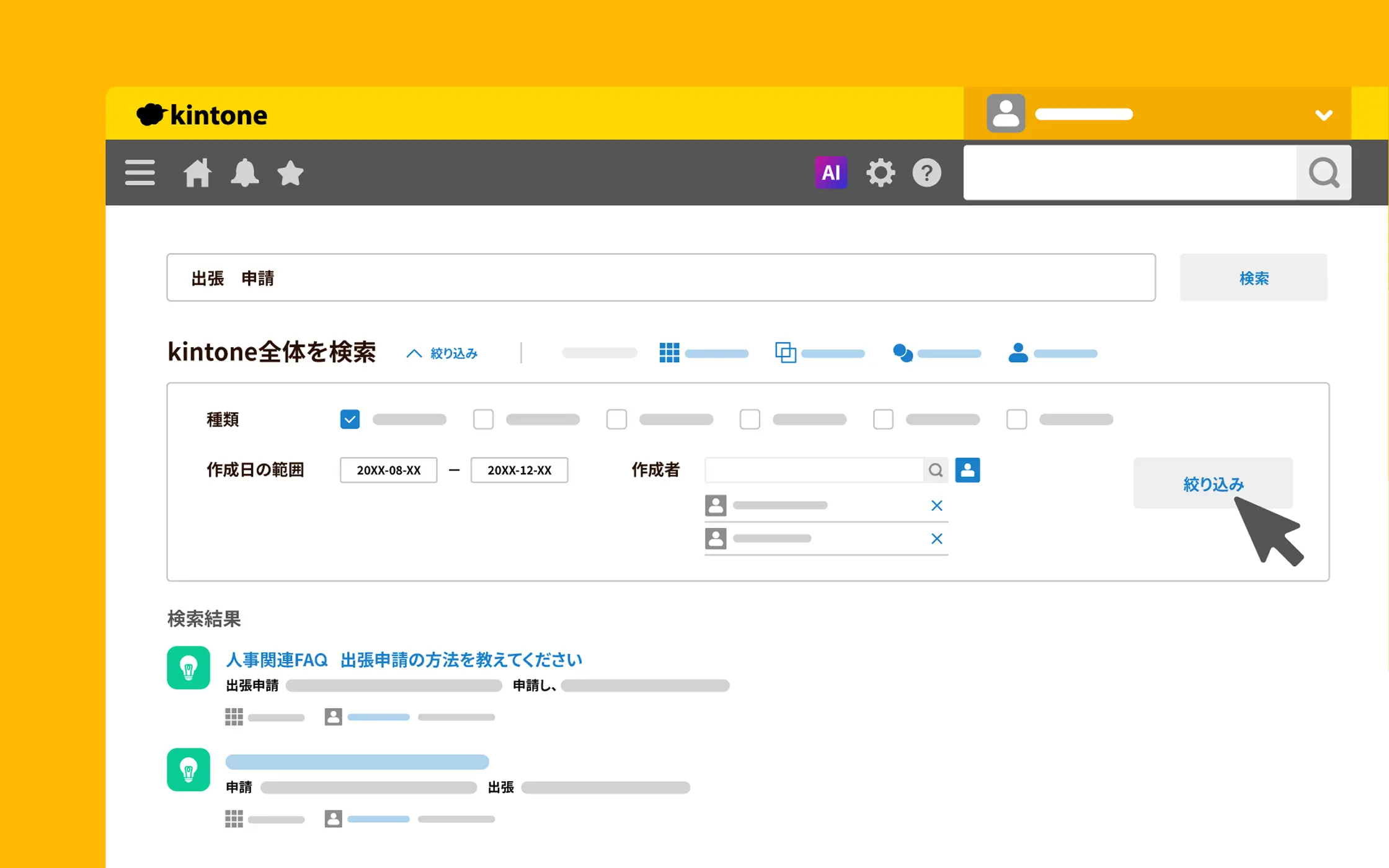- 承認状況や担当者別に絞り込み、目的の情報を効率よく探し出せます。