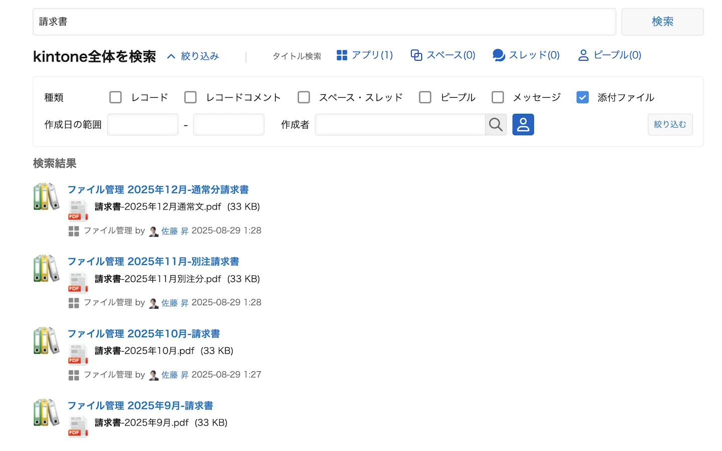 - 申請番号や日付、キーワードなどで、過去の申請を瞬時に検索できます。