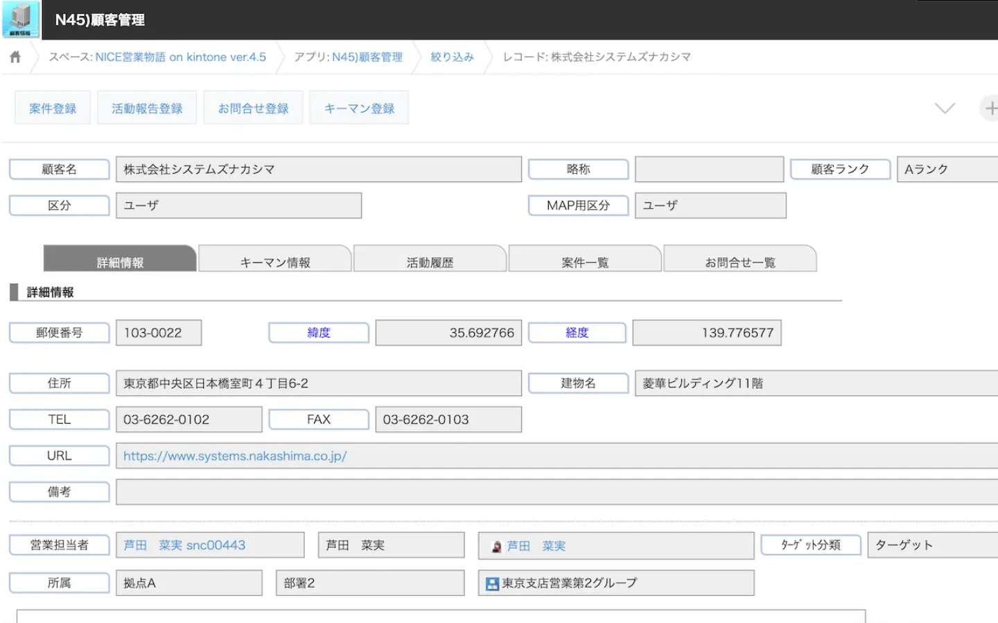 NICE営業物語 on kintone(提供:株式会社システムズナカシマ)
