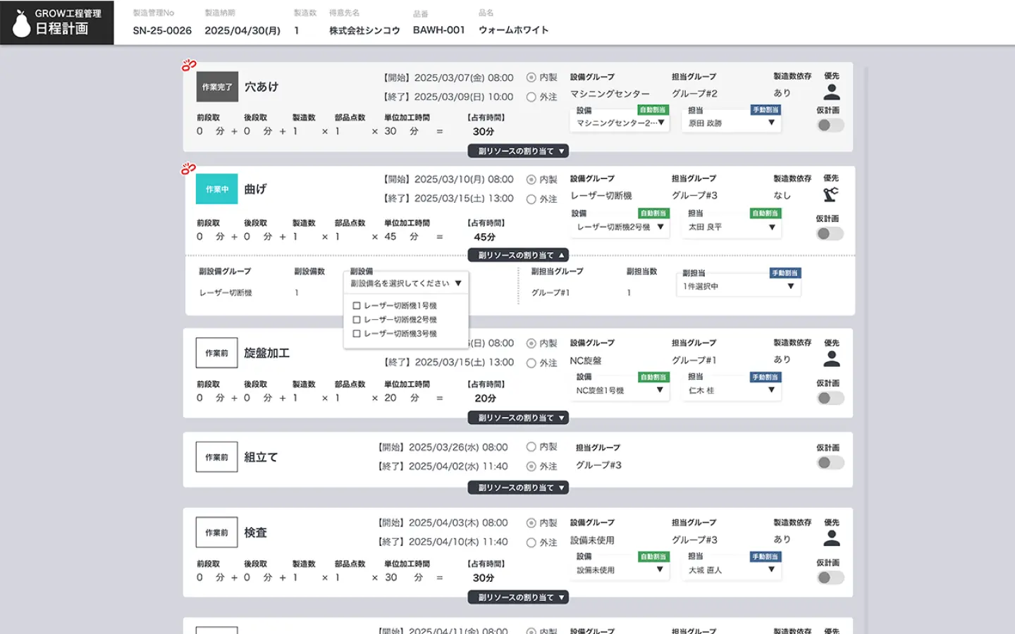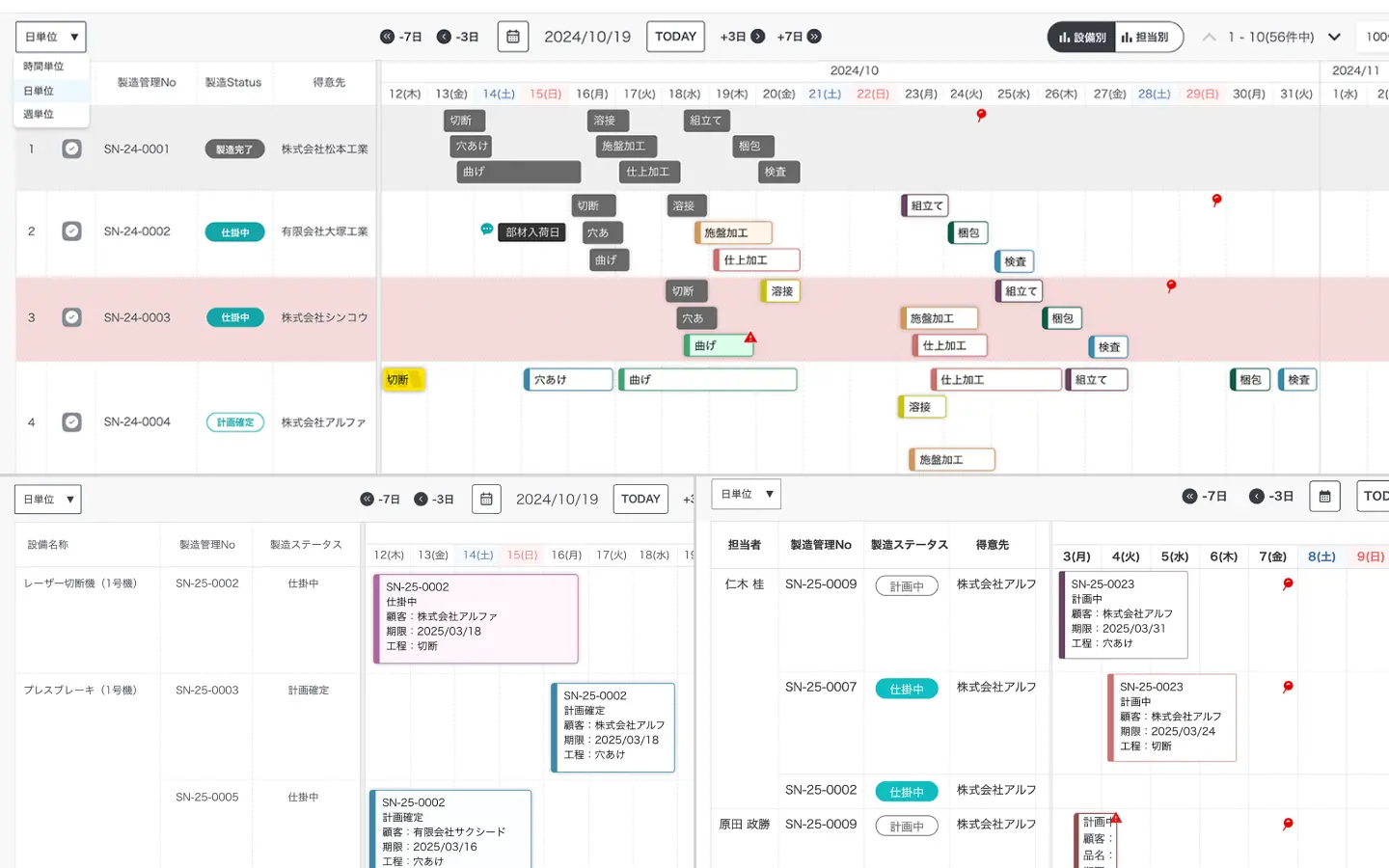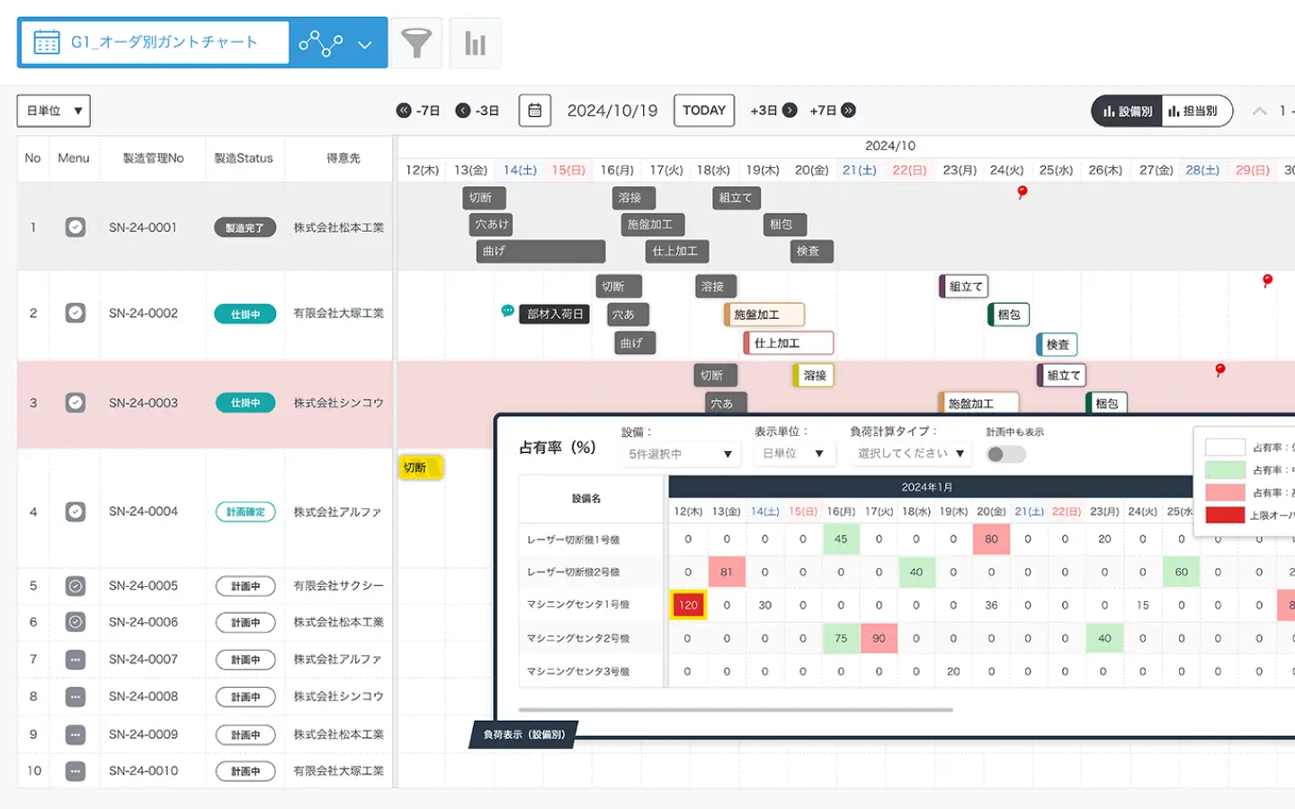 多品種小ロット×受注生産型の製造業向け工程管理・生産スケジューラです。